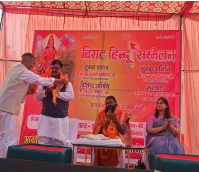 रानीपुर नगर हरिद्वार। 22 फरवरी,2026 को विराट हिंदू सम्मेलन का आयोजन टिहरी विस्थापित श्रीदेव सुमन पार्क में किया गया इस सम्मेलन मे विशेष अतिथि श्री लोकेंद्र जी(RSS विभाग कार्यवाह,हरिद्वार) व मुख्य वक्ता पूज्य श्री स्वामी धर्मानंद जी(धन्वन्तरि योग आश्रम, बहादराबाद) व विशिष्ट अतिथि श्रीमती निशा शर्मा (पूर्व सहा. प्रोफेसर गुरुकुल कांगड़ी) सम्मिलित रहे।